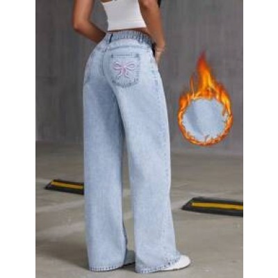 SHEIN Teen Boy Fashion Casual Vintage Designed Wash Water Blue Loose Straight Leg Jeans, Thanksgiving Costume Dailywear And Fall/Winter